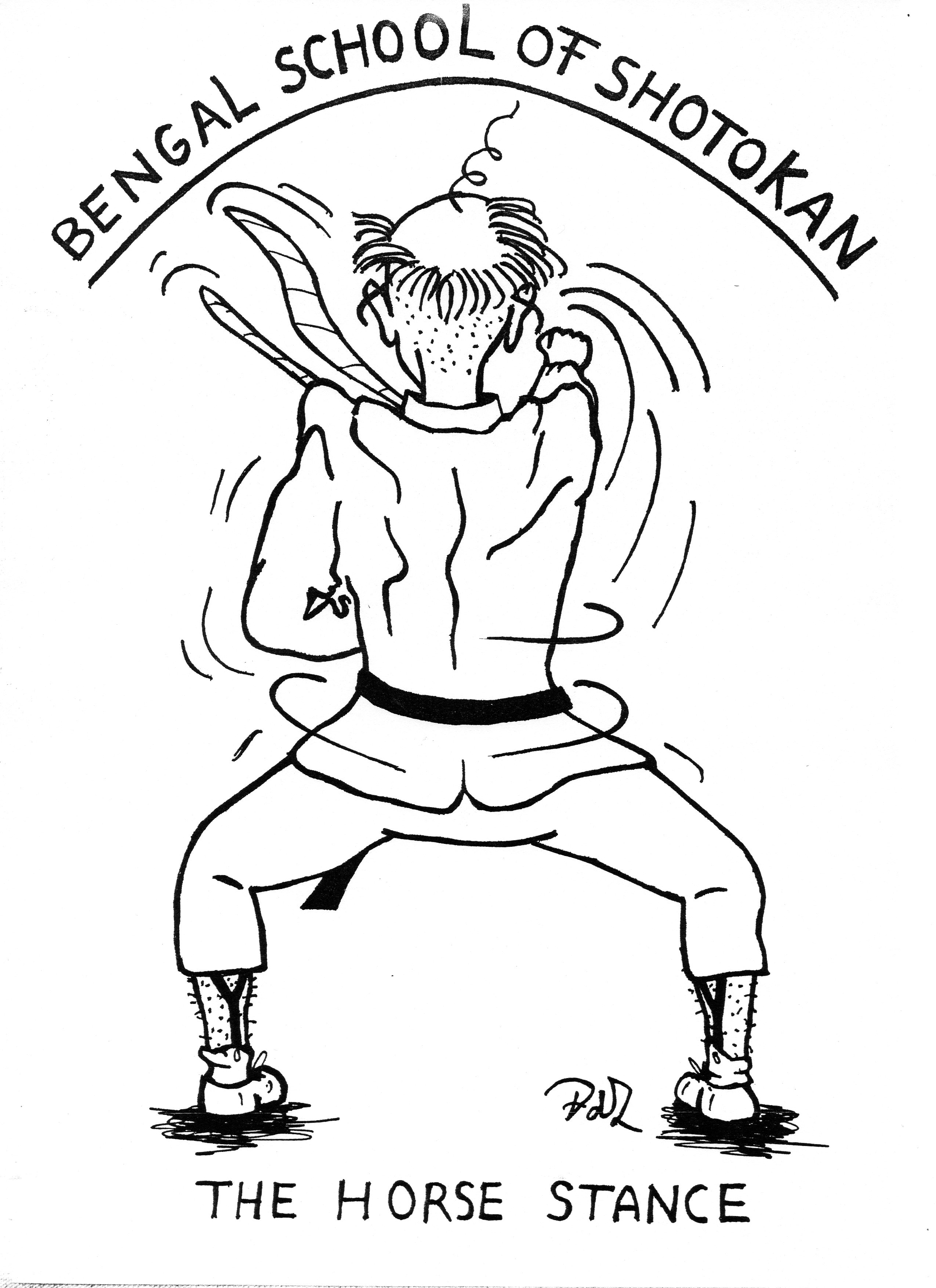 Karate Joe, never too old to do sports, The Horse Stance, back (drawing by Frank de Zanger)
