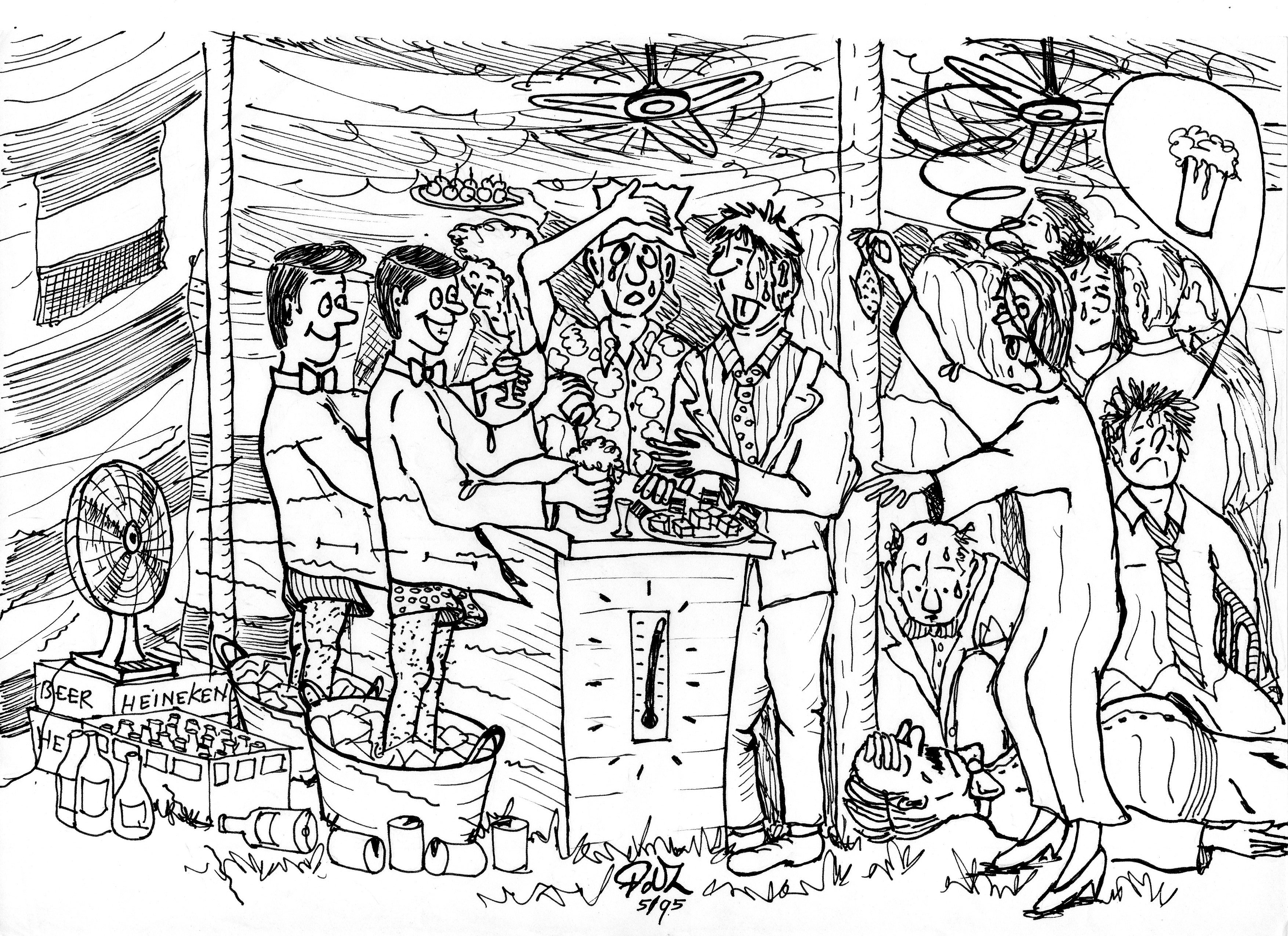 Koninginnedag/Queensday, 1995, Dutch Club, Dhaka, Bangladesh (drawing by Frank de Zanger)