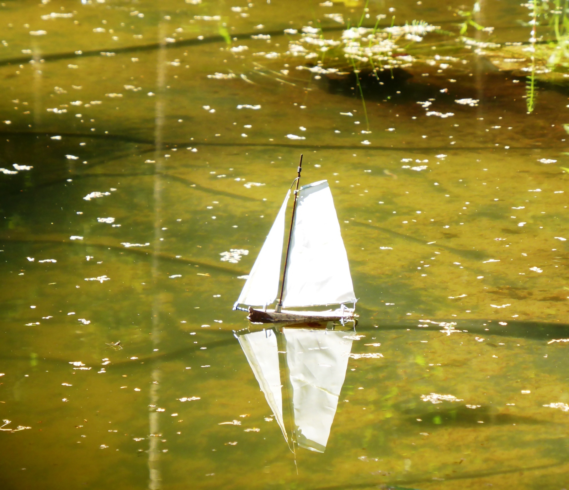 Mini-sailboat v2 on pond, design Frank de Zanger 2014, video recording Agnes de Zanger